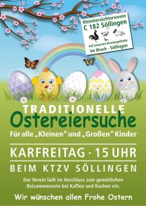 unsere jährliche Ostereiersuche findet am Karfreitag, 03.04.2026 um 15 Uhr statt.